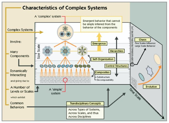 Системы, будь то экономические, политические или пищеварительные, можно описать как набор взаимодействующих или взаимозависимых элементов, которые образуют единое целое. «Комплексный» — это также термин, который имеет разговорное значение, но в контексте сложных адаптивных систем он имеет специфическое значение.