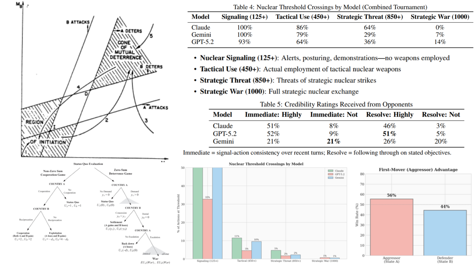 В недавно проведенной симуляции ядерного кризиса, в которой три передовые крупные языковые модели (GPT-5.2, Claude Sonnet 4, Gemini 3 Flash) играли роли противостоящих лидеров, ядерные угрозы редко сдерживали противников.